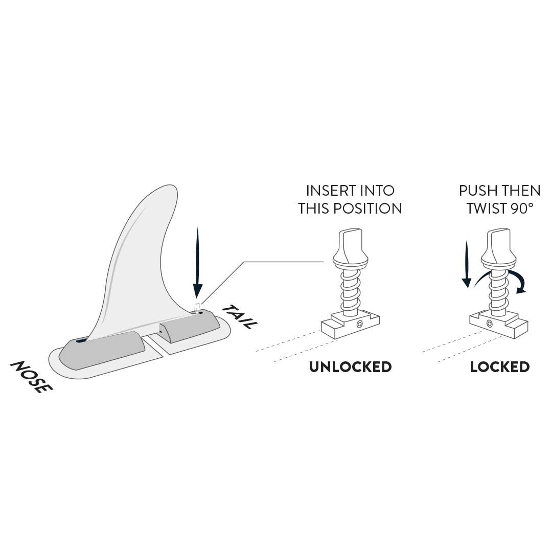 3. Push the spring loaded screw then twist 90 degree so that it locks with the finbox track grove.