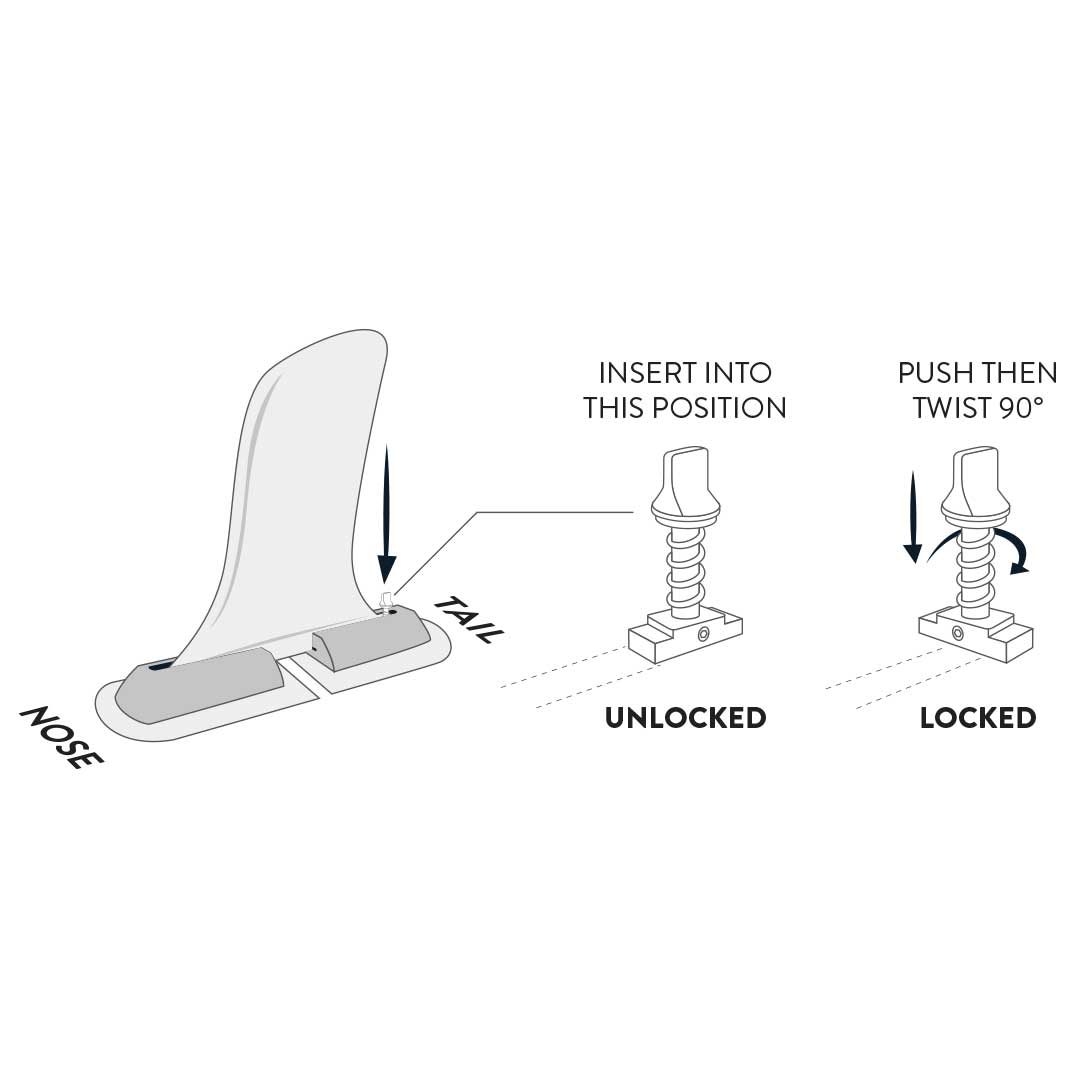 3. Push the spring loaded screw then twist 90 degree so that it locks with the finbox track grove.