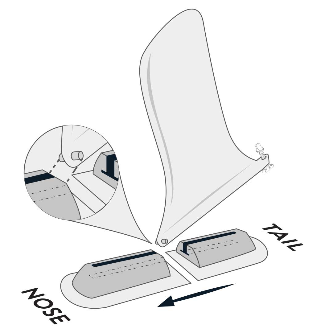 2. Slide the front of the fin into the finbox so that the pins are down in the track of the finbox and slide towards the front of the finbox.